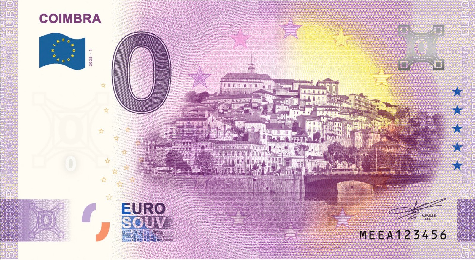 Esta nota é muito mais do que um simples souvenir—é uma peça que encapsula a essência da icónica cidade de Coimbra. Produzida com maestria pela Souvenirs do Marquês, esta obra reúne dois elementos que definem a identidade cultural e histórica da cidade: o majestoso rio Mondego e a monumental Universidade de Coimbra. Um presente ideal para quem valoriza o encanto dos destinos memoráveis e a riqueza arquitetónica que a cidade tem a oferecer.