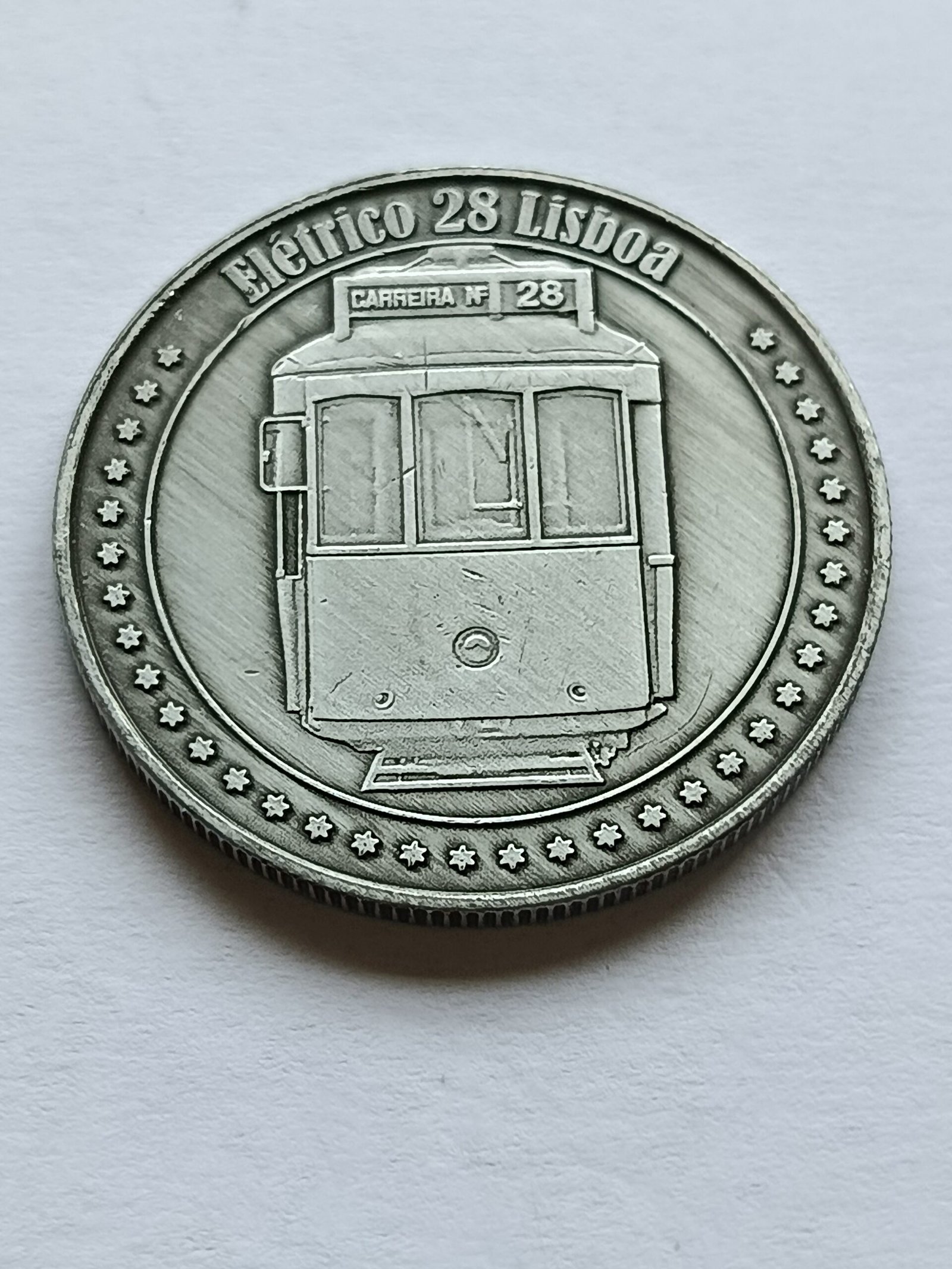 A Medalha – Elétrico 28 em Prateado da Souvenirs do Marquês homenageia um dos símbolos mais icónicos de Lisboa: o histórico Elétrico 28. Com um acabamento prateado elegante e design detalhado, esta medalha é ideal para quem procura souvenirs autênticos de Lisboa, peças para revenda ou recordações da capital. Uma lembrança perfeita do charme das ruas lisboetas e do famoso percurso do Elétrico 28.