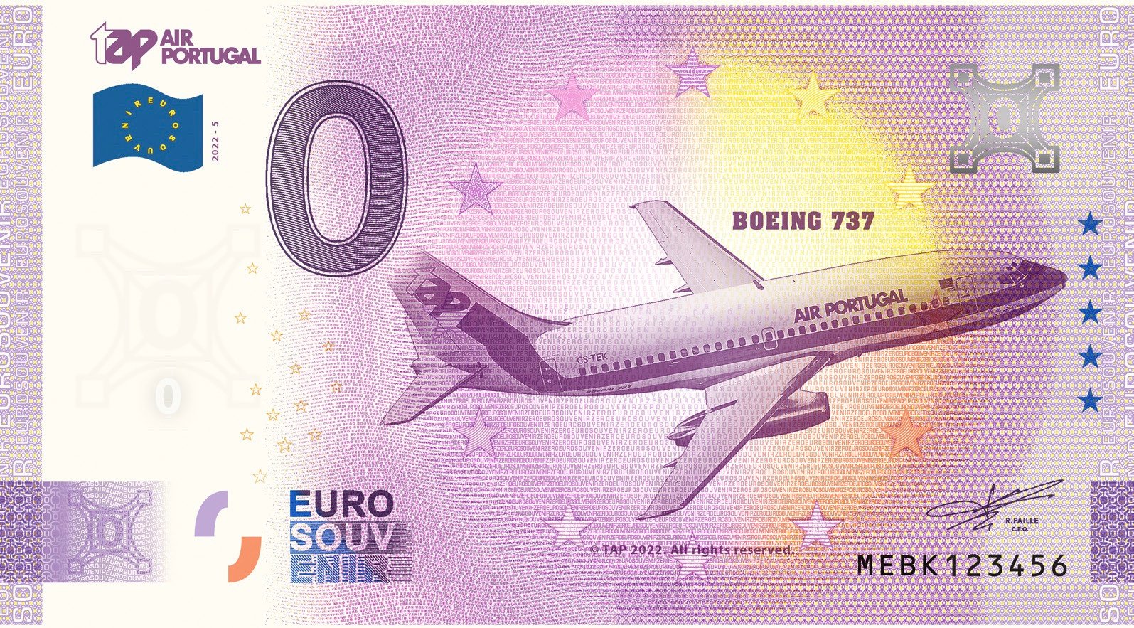 Nota Euro Souvenir TAP – Primeiro Voo do Boeing 737